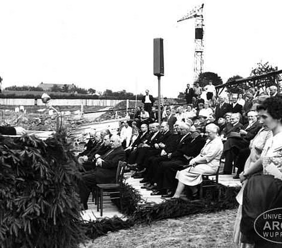 Direktor Prof. Dr. Oskar Hammelsbeck bei der Grundsteinlegung auf der Hardt am 20. Juli 1955. Foto: unbekannt, Signatur: 071511100008